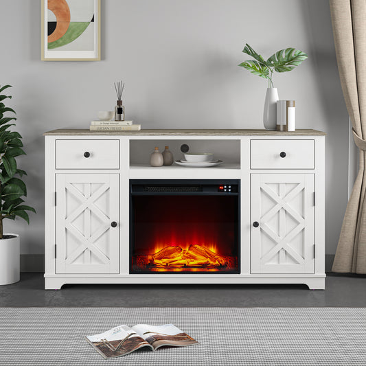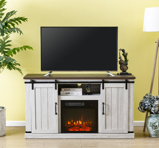 FestivoFFP20271 54" TV Stand with 18" Electric Fireplace & 2 Barn Door-White