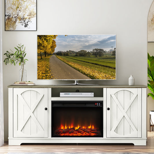 Festivo FTS23226 60" TV Stand with 23" Electric Fireplace-White