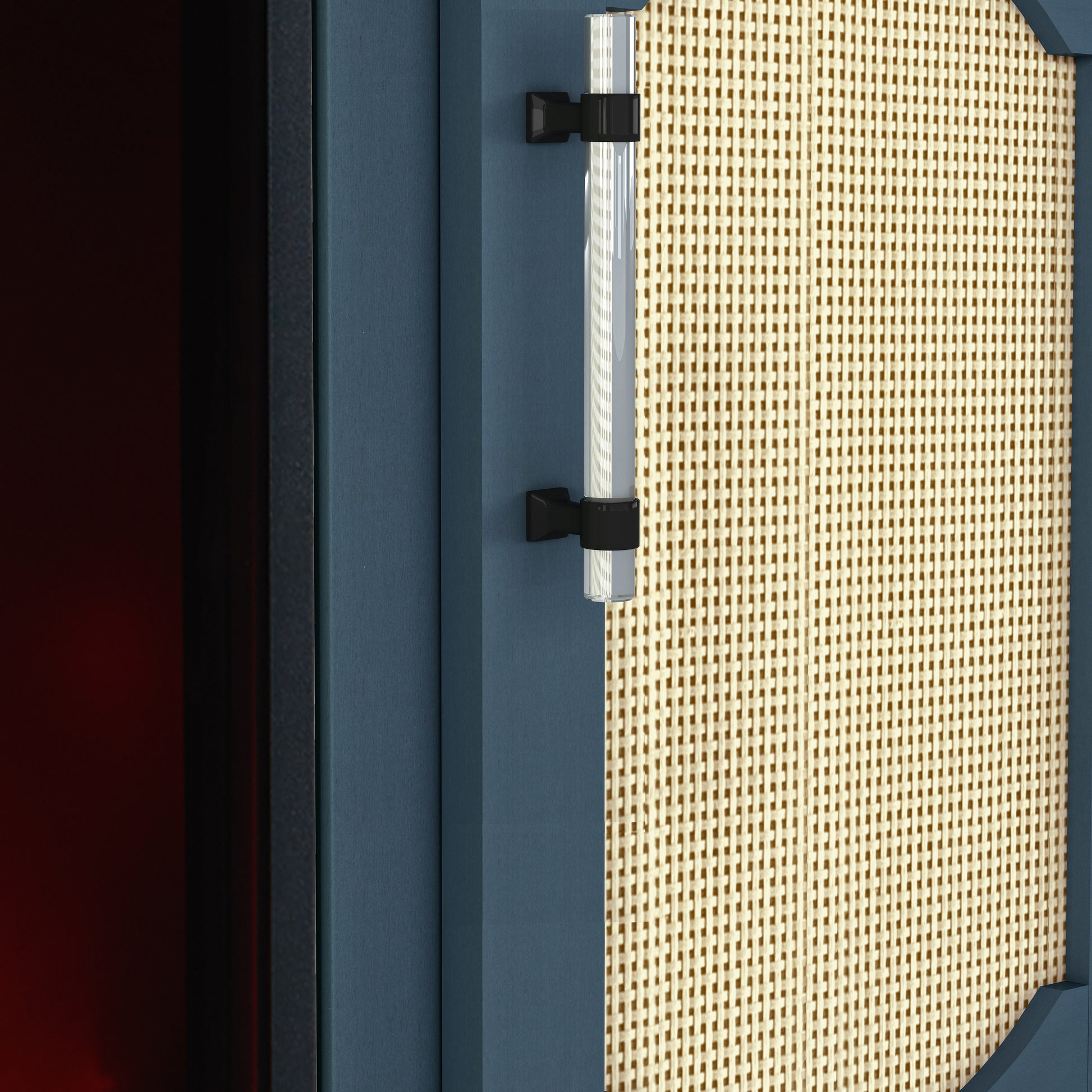 Designed to cater to your needs, this stand offers ample space for TVs up to 65". It also includes two drawers with wicker-touch doors and a wood grain top surface, providing organized storage for your belongings.