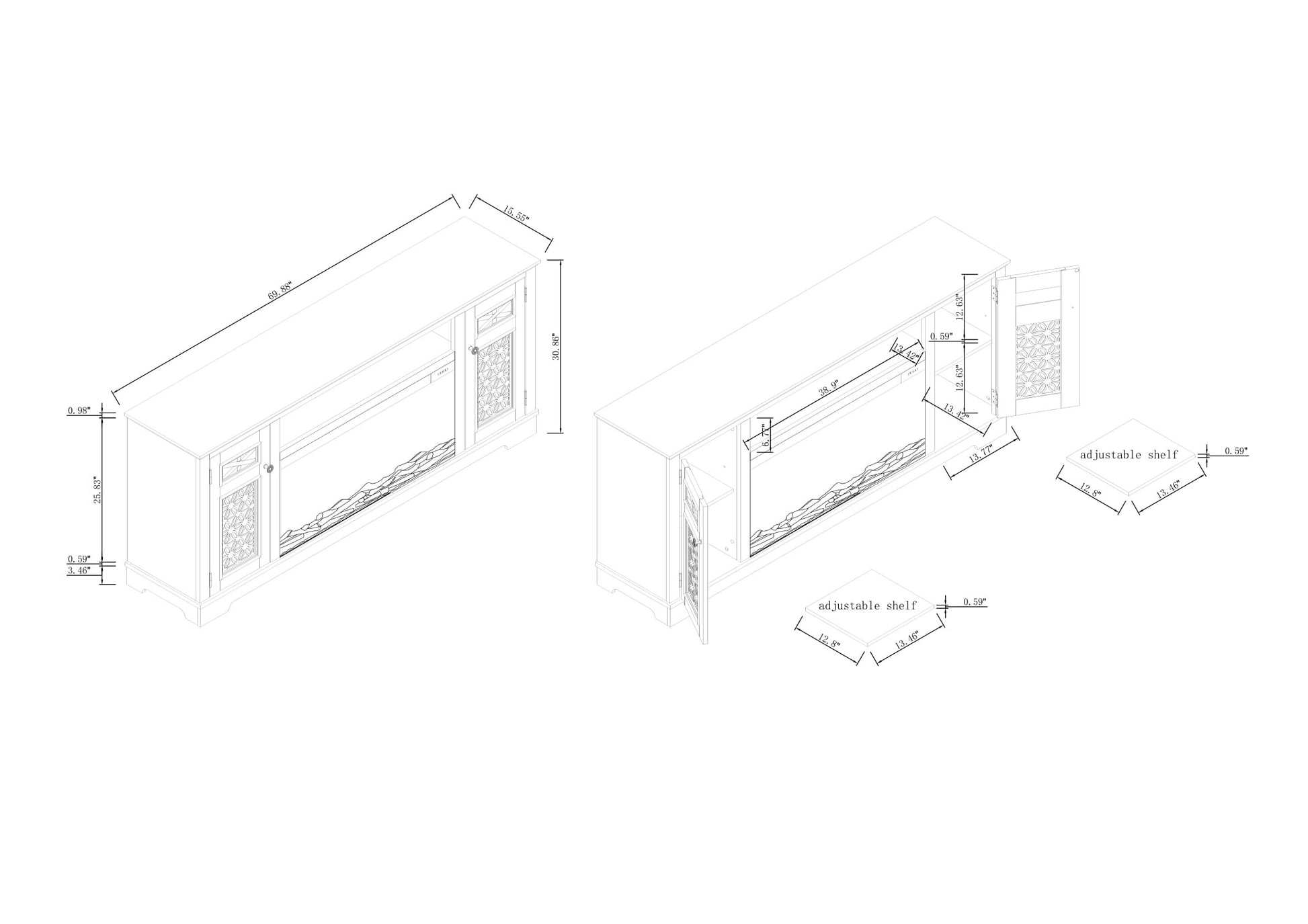 Festivo FTS24273 70" TV Stand with 36" Electric Fireplace-White