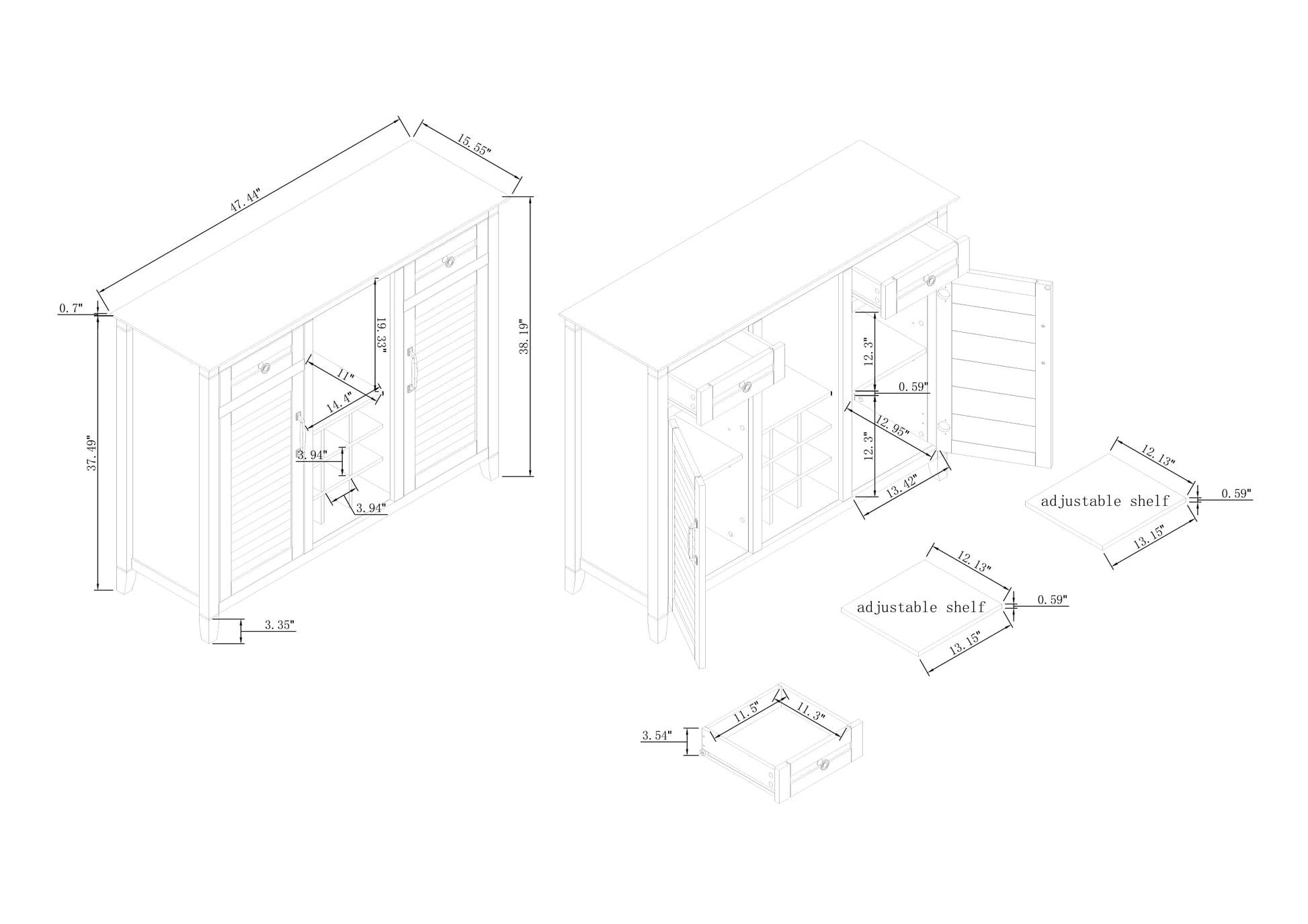 - Overall Dimensions: 47.5" W x 38" H x 15.5" D