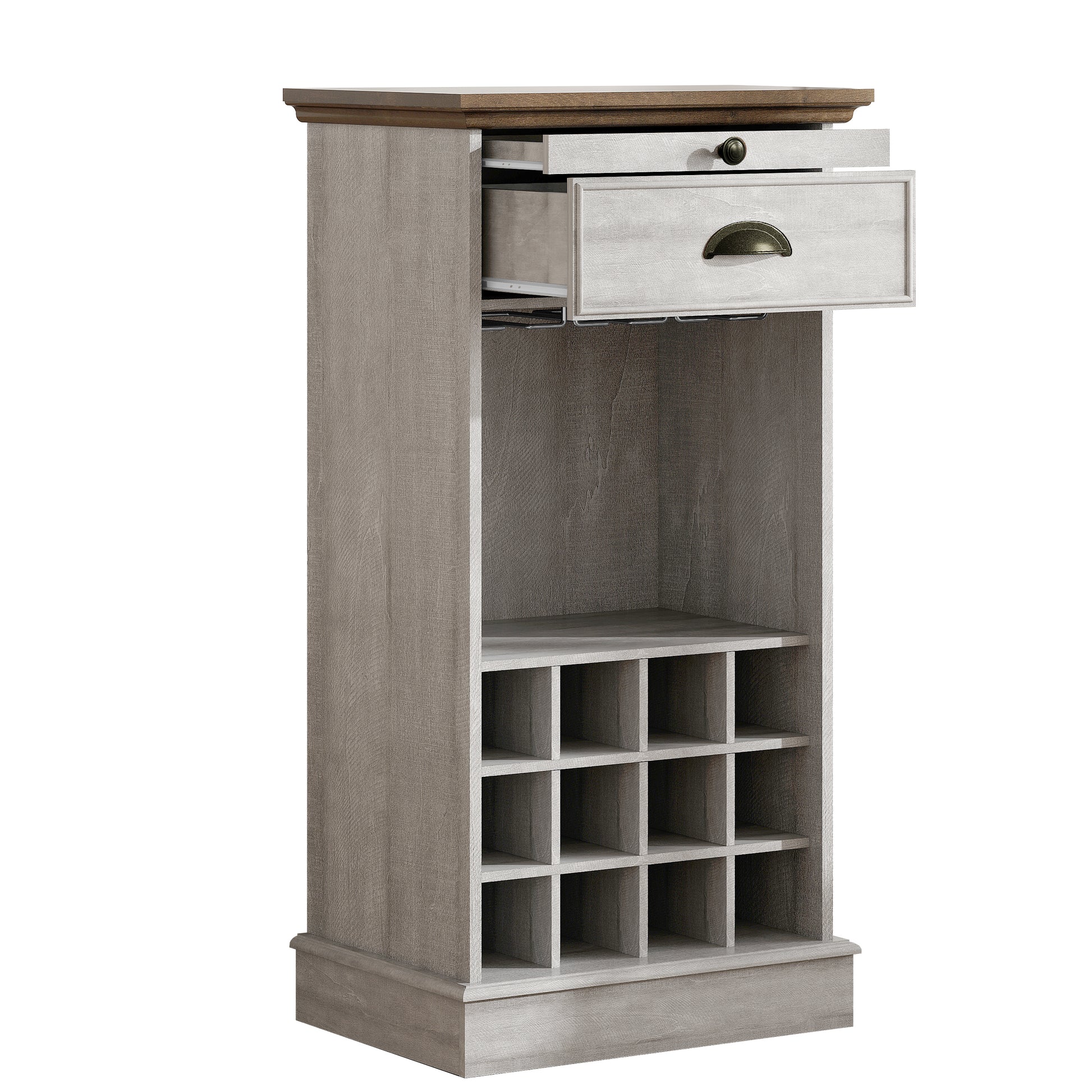 Discover the perfect blend of functionality and style with our Dual-Tone Wine Cabinet, an essential for any wine enthusiast's home. Designed to seamlessly integrate into your space, this cabinet features a sophisticated two-tone finish that complements any decor. The smooth sliding drawer with dual handles provides convenient access, while the integrated metal glass holder and wood lattice rack celebrate both form and function, ensuring your wine collection is both stored and showcased in elegance.