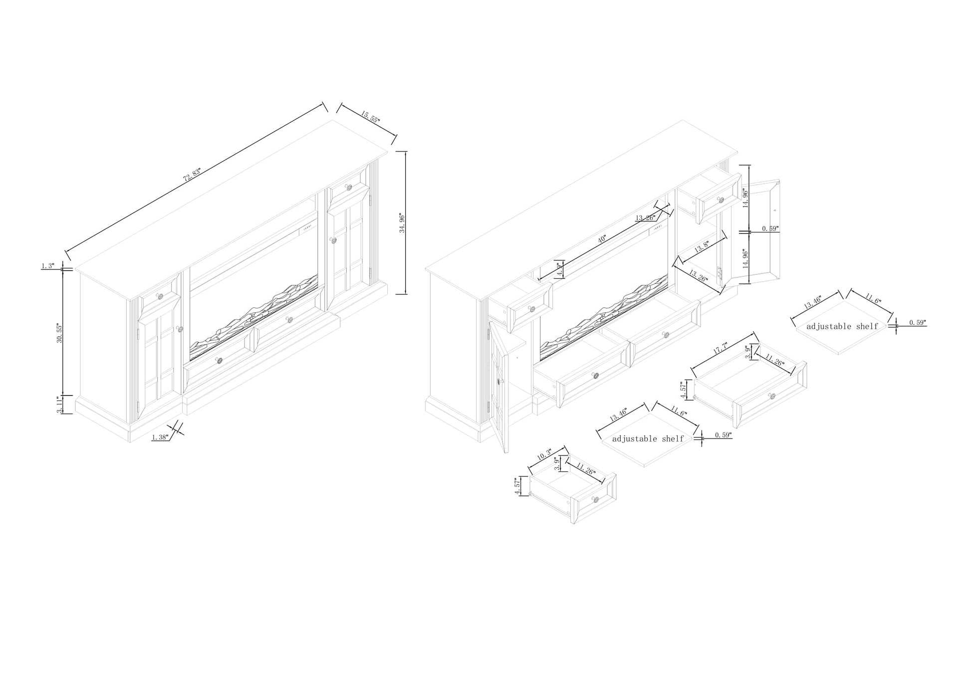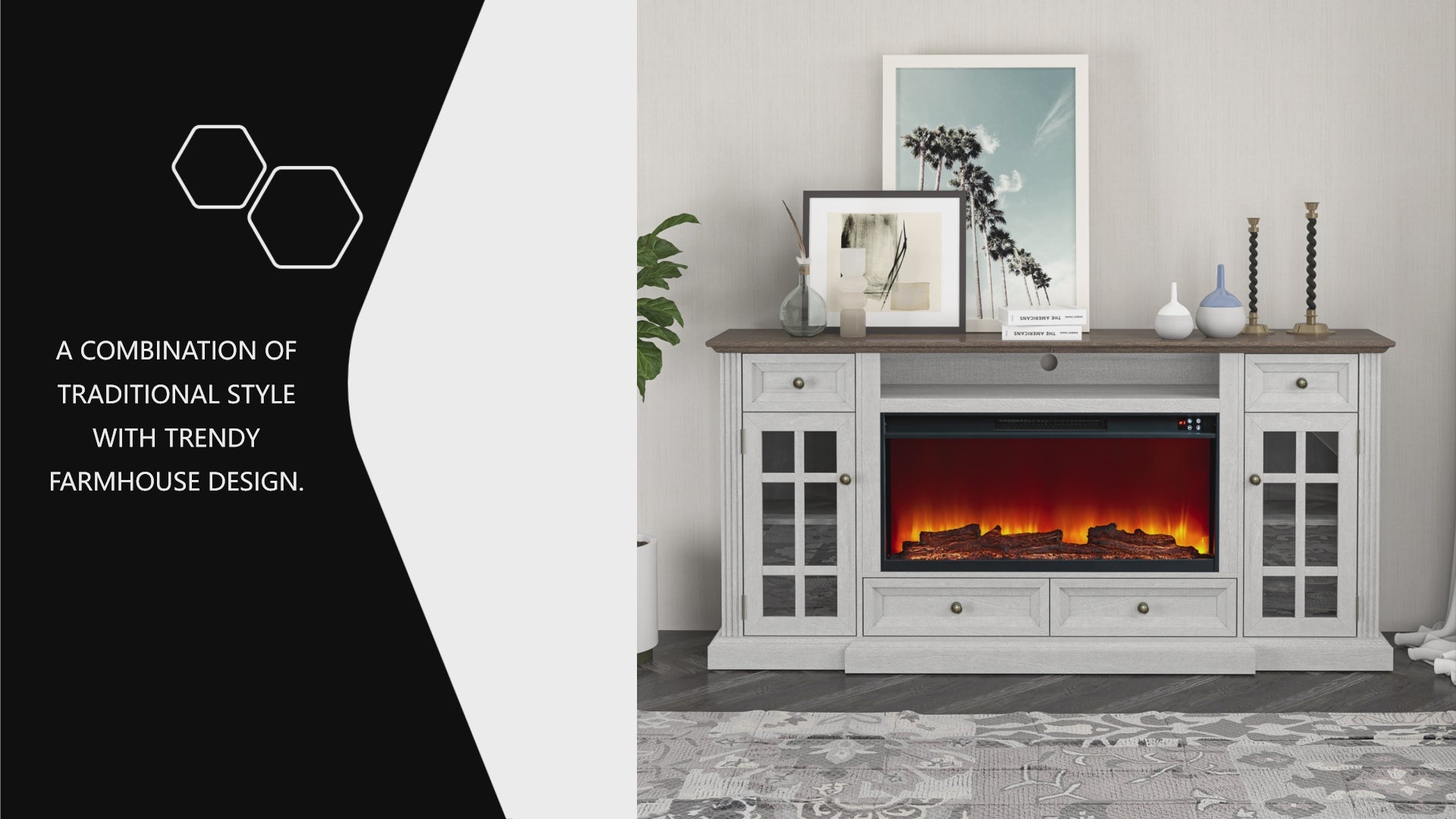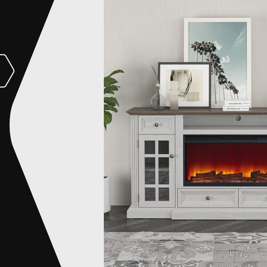 Festivo FTS24276 73" TV Stand with 36" Electric Fireplace-OffWhite